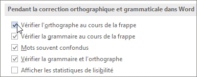 Accédez aux options de vérification de l’orthographe et de la grammaire :